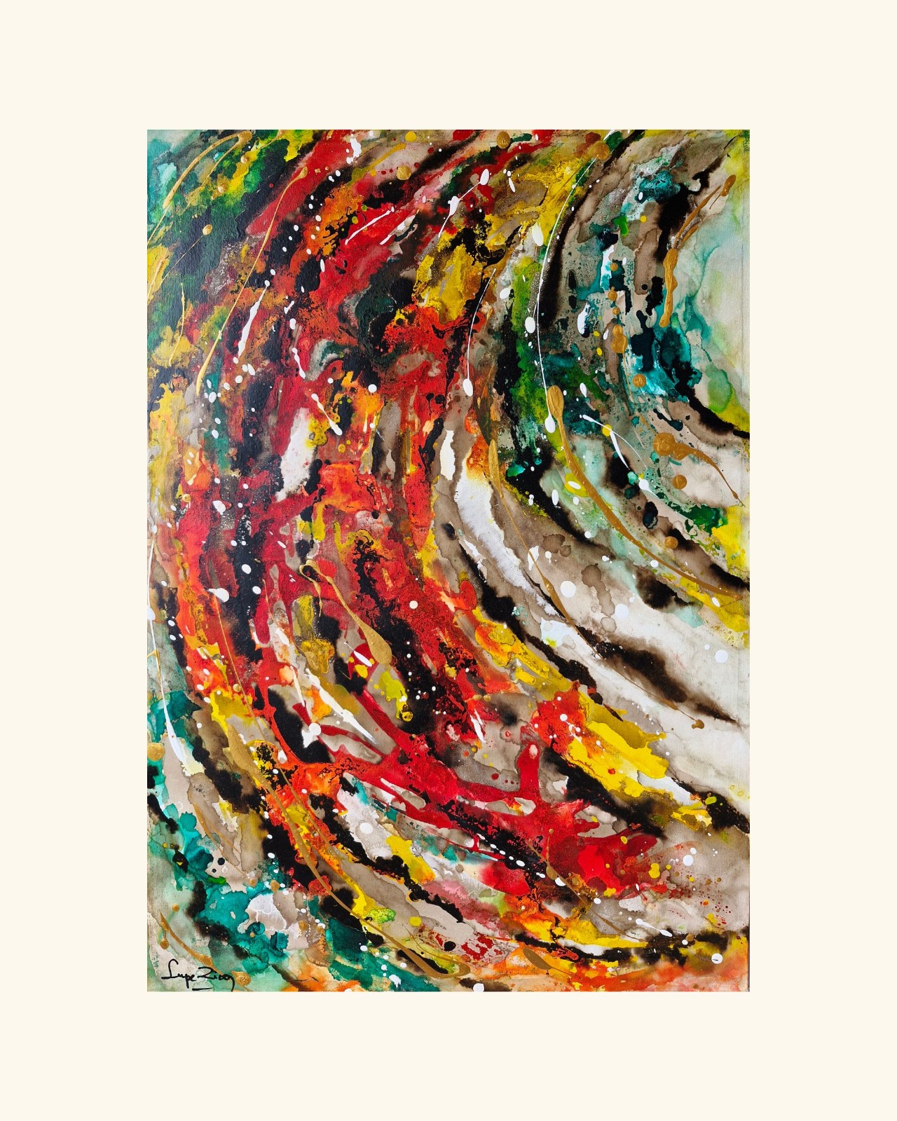 Esta obra nace desde la intuición pura y la libertad absoluta. Es un regreso al gesto espontáneo, a ese estado lúdico de la infancia donde crear no implica pensar, sino sentir.