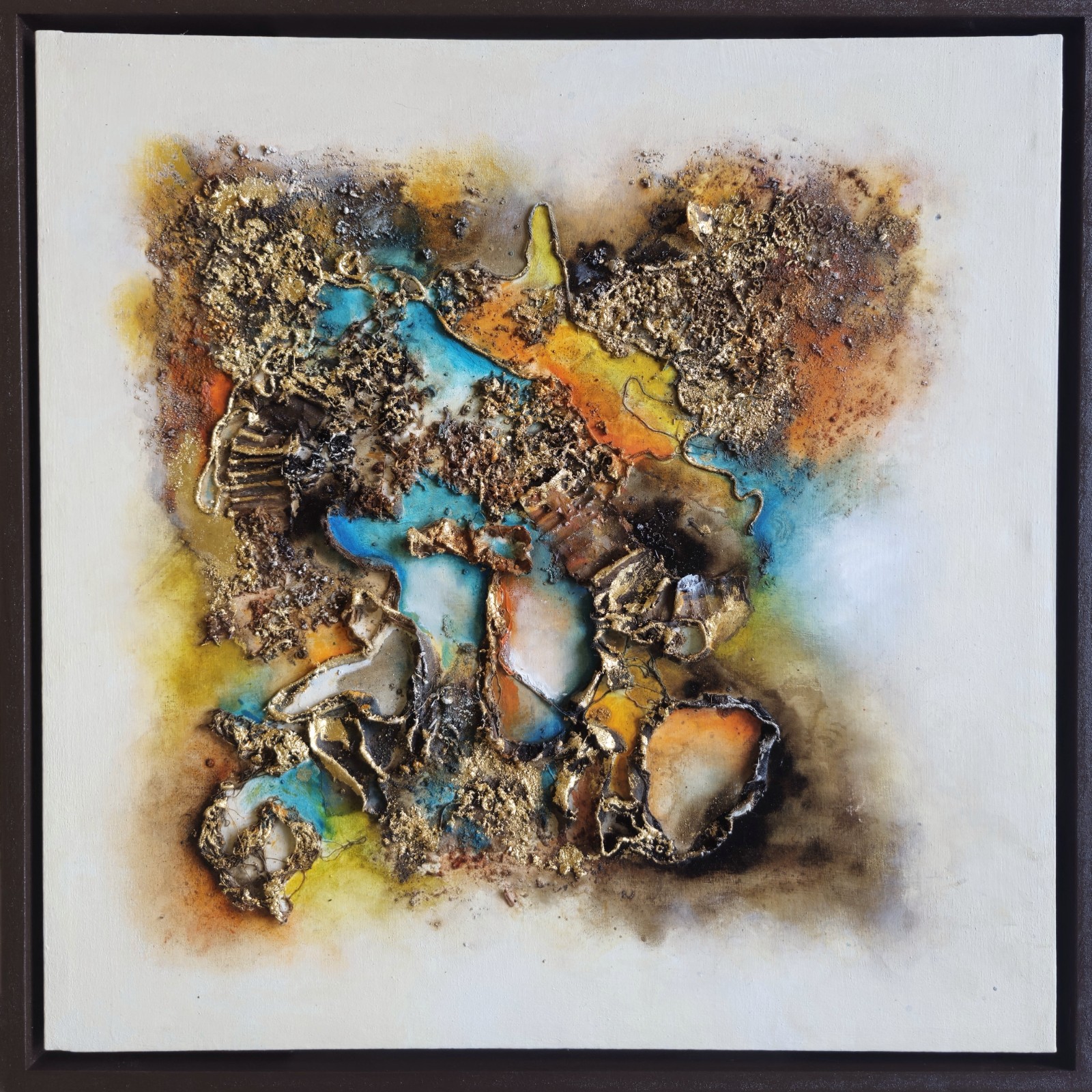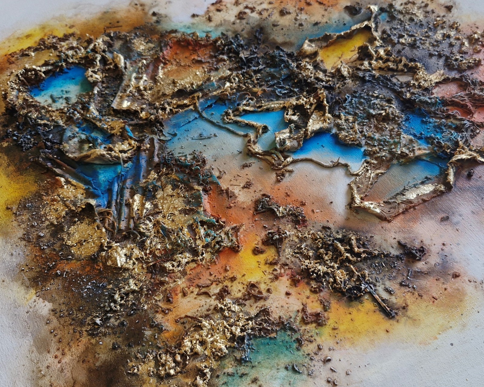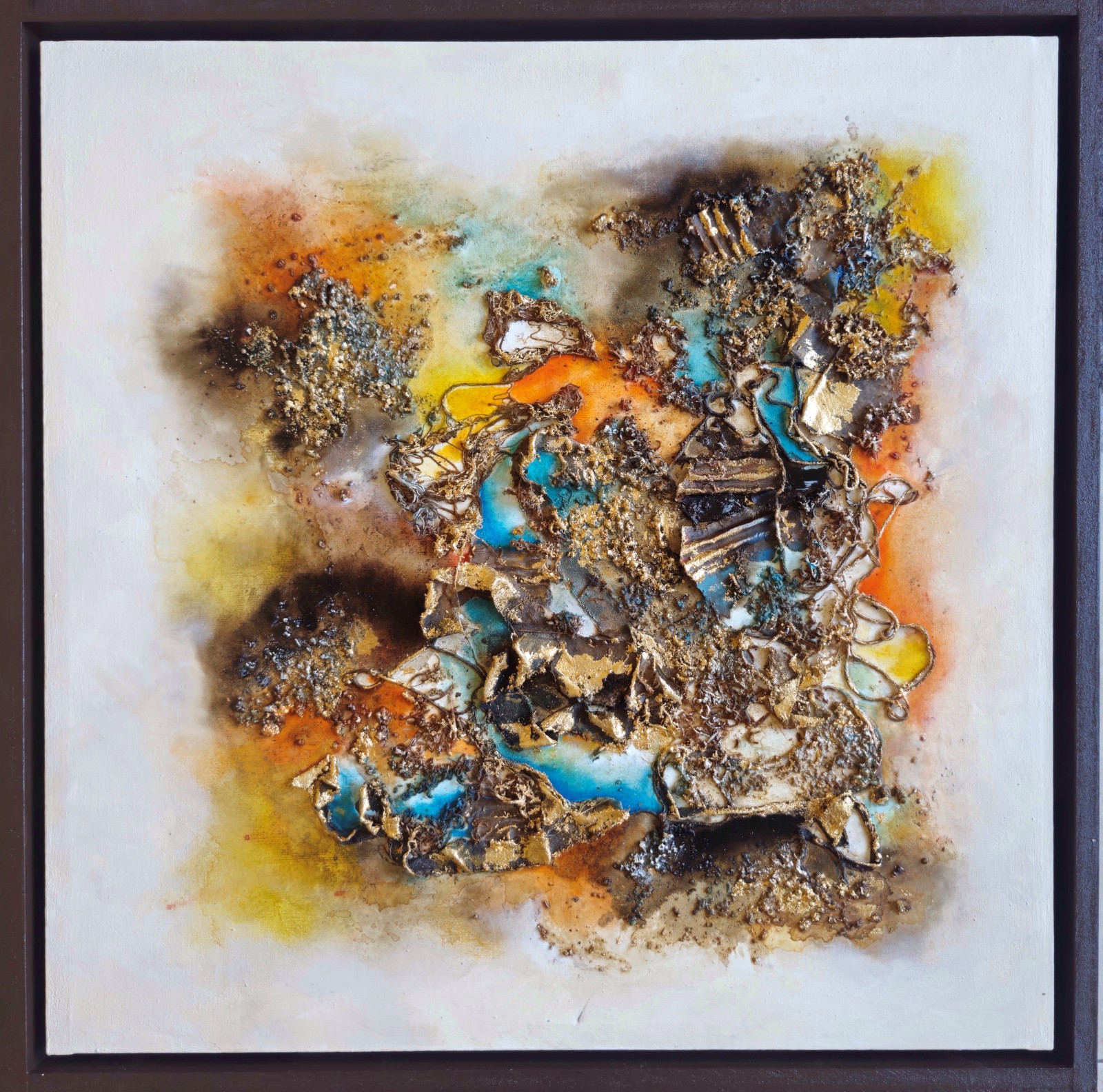 Técnica: mixta (Texturas, cafe, acrílicos, óleos, pintura asfáltica y hoja de oro)