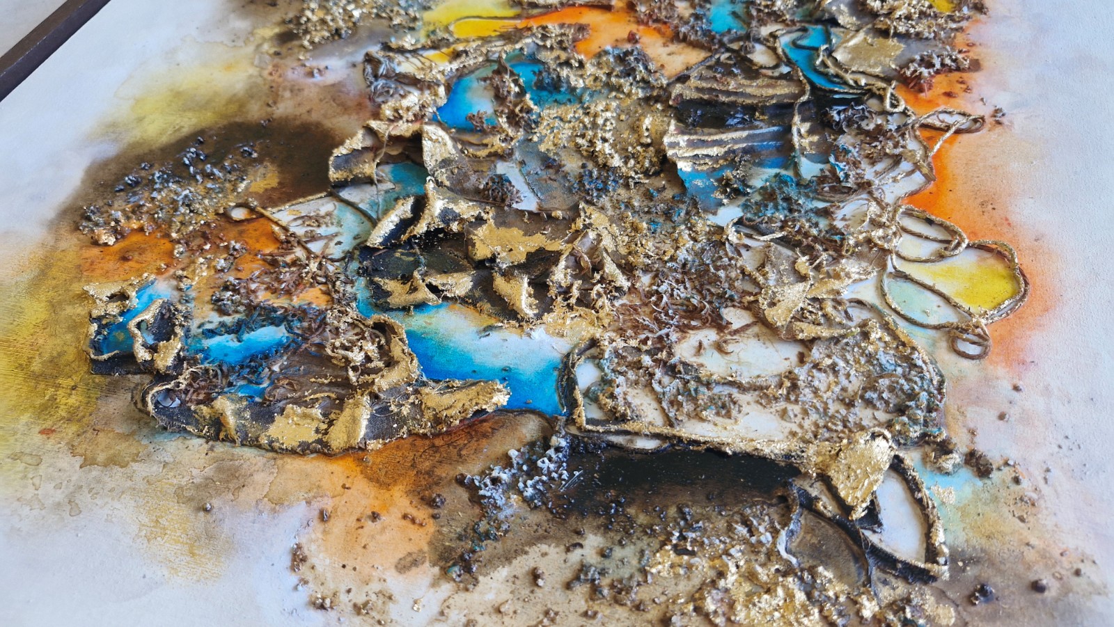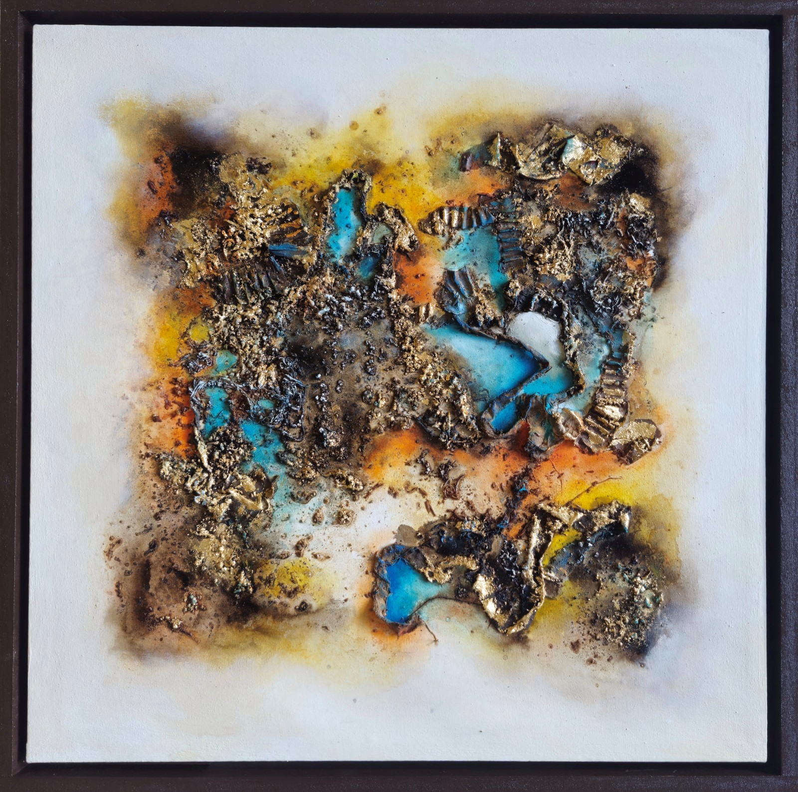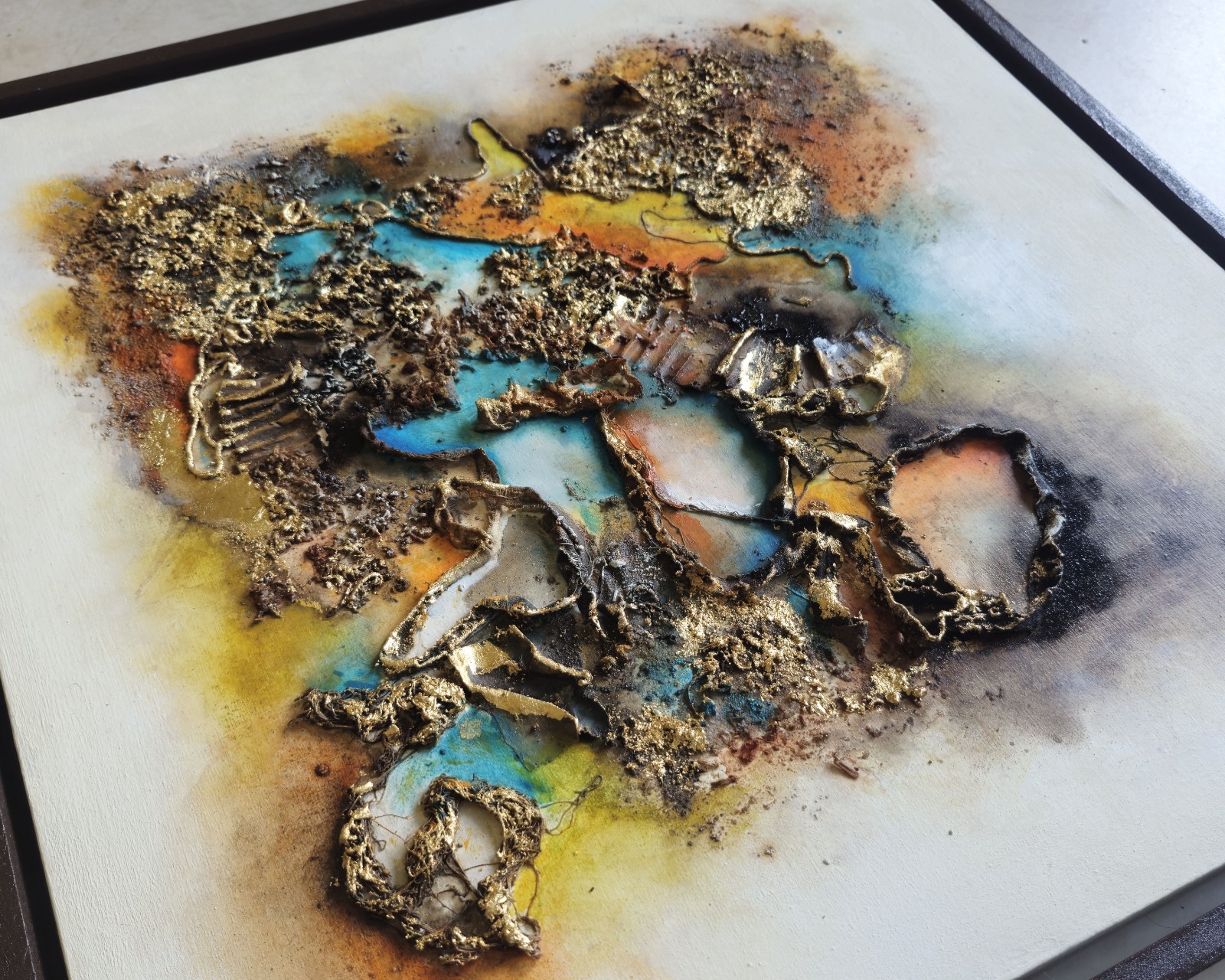Técnica: mixta (Texturas, cafe, acrílicos, óleos, pintura asfáltica y hoja de oro)