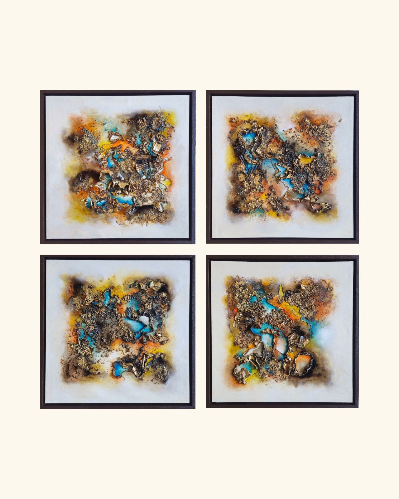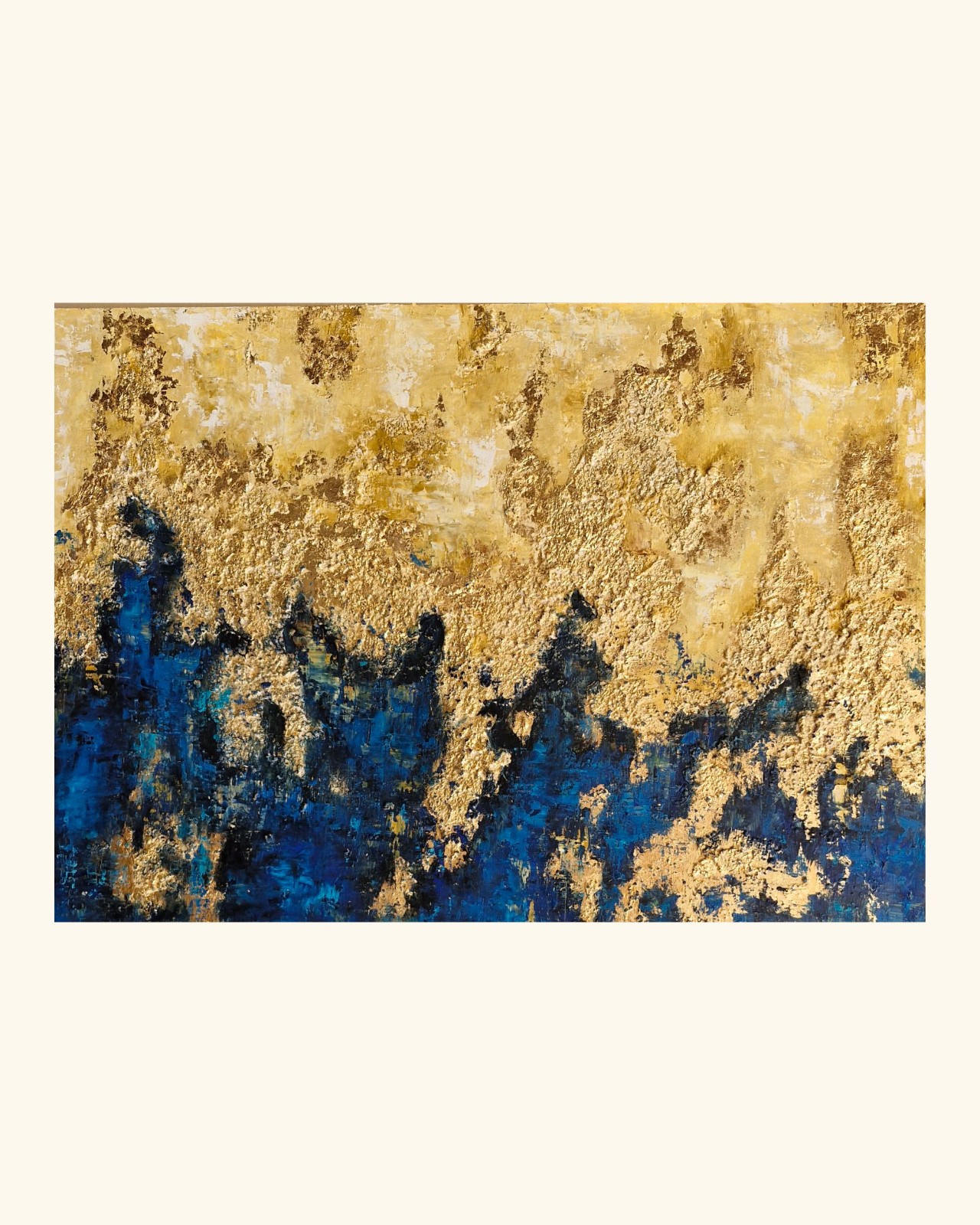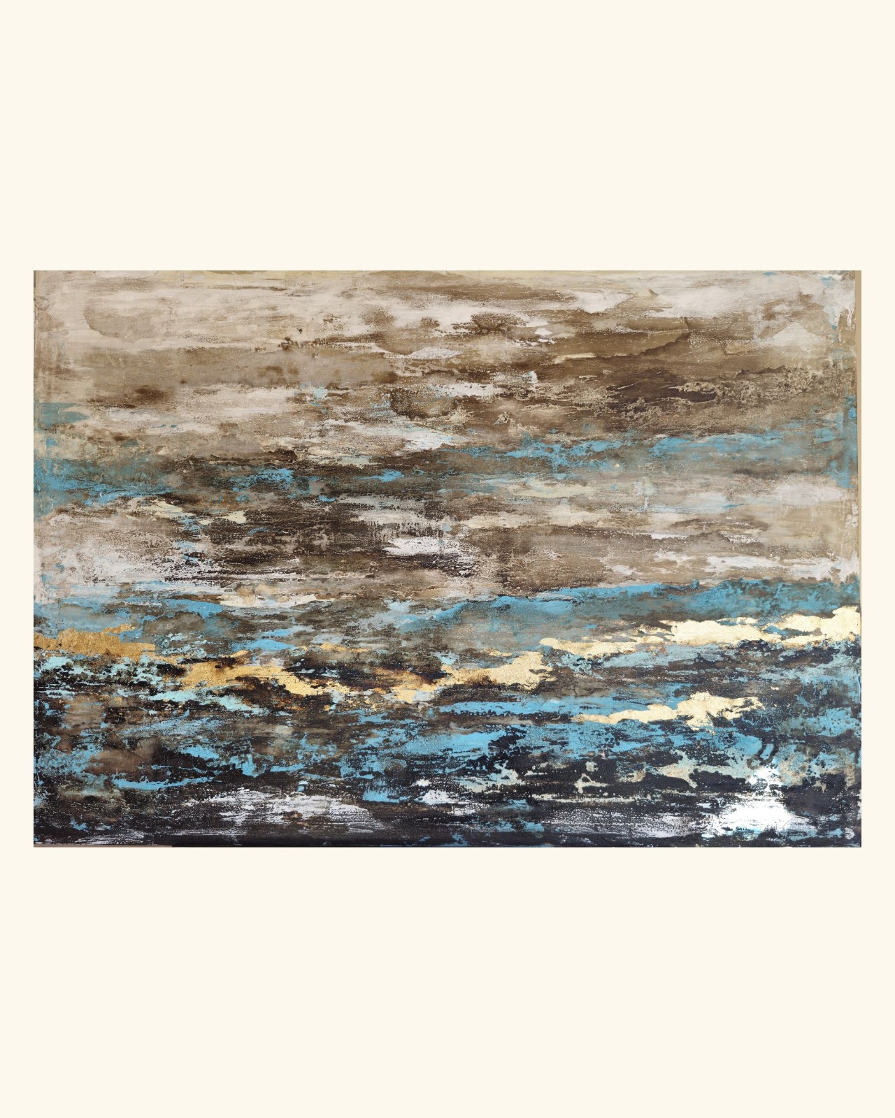 Cada obra nace a partir de una idea generadora: un paisaje, una emoción, un recuerdo o un momento particular. A partir de allí comienza un proceso intuitivo donde las capas y la interacción entre los materiales revelan una composición única e irrepetible.