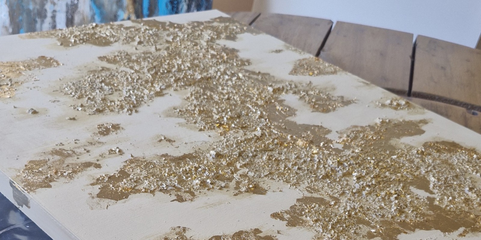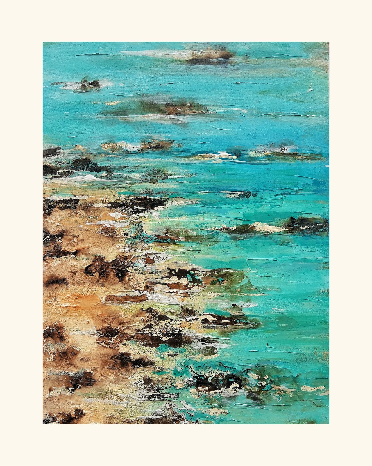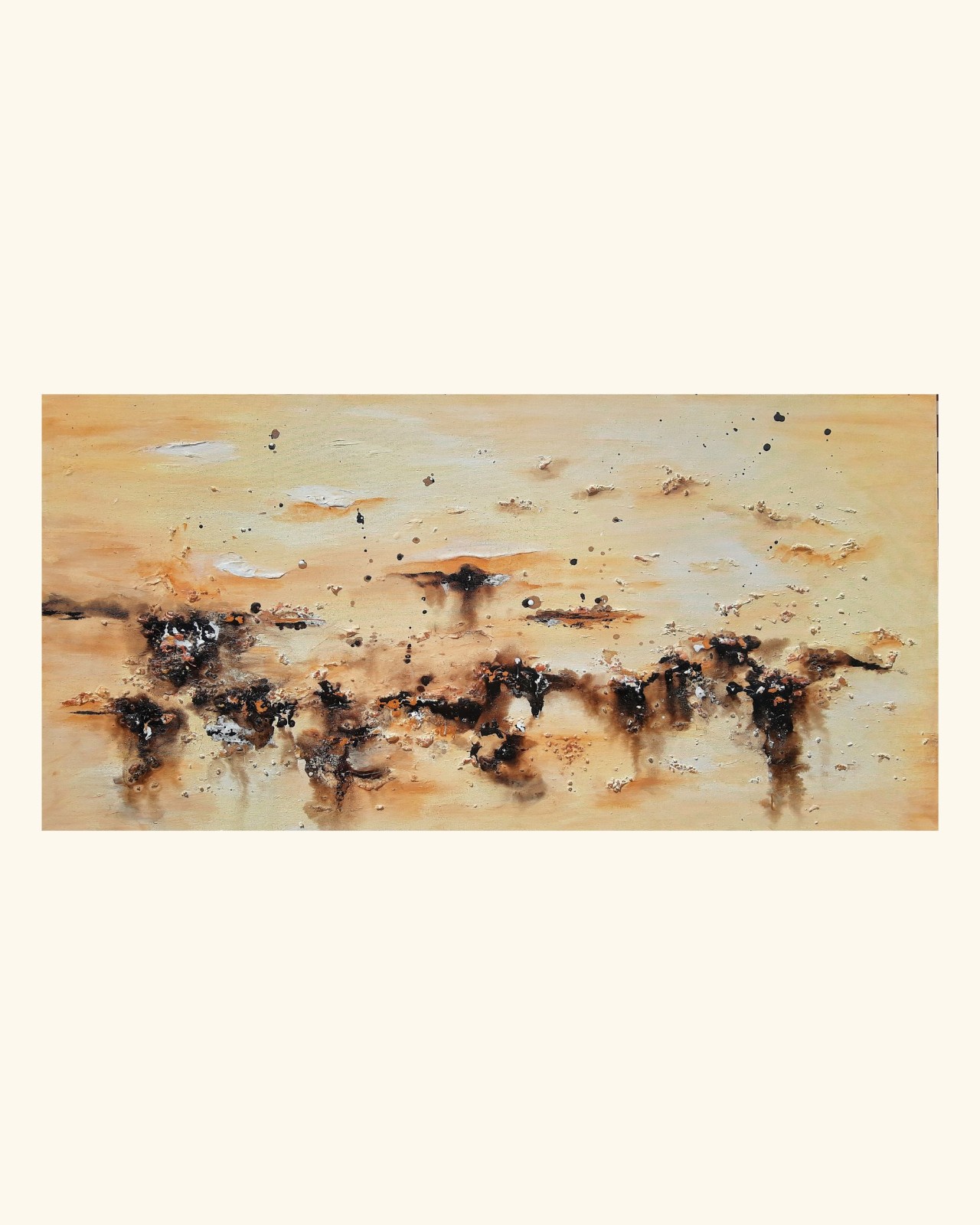 Cada obra nace a partir de una idea generadora: un paisaje, una emoción, un recuerdo o un momento particular. A partir de allí comienza un proceso intuitivo donde las capas y la interacción entre los materiales revelan una composición única e irrepetible.