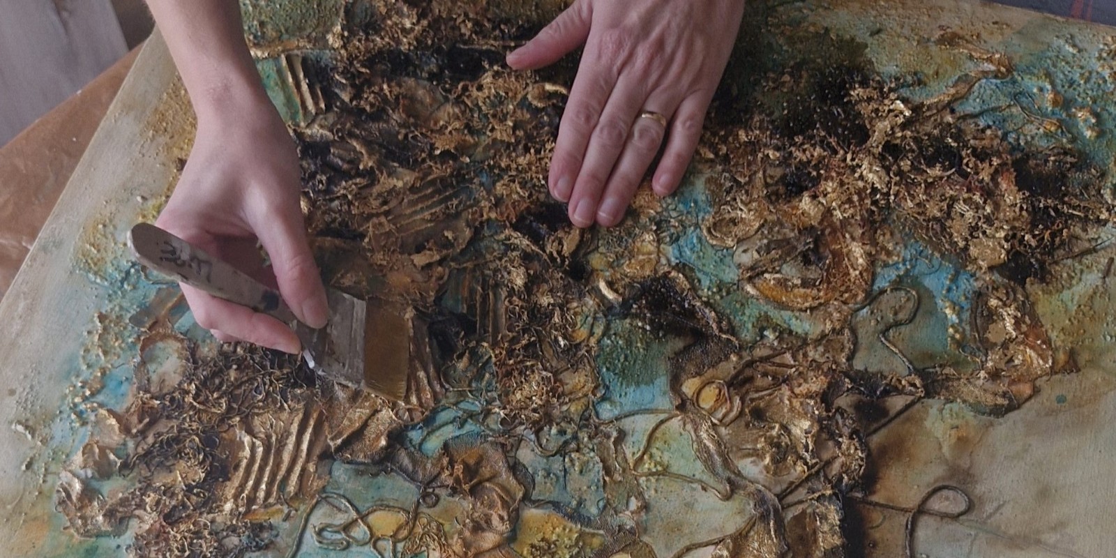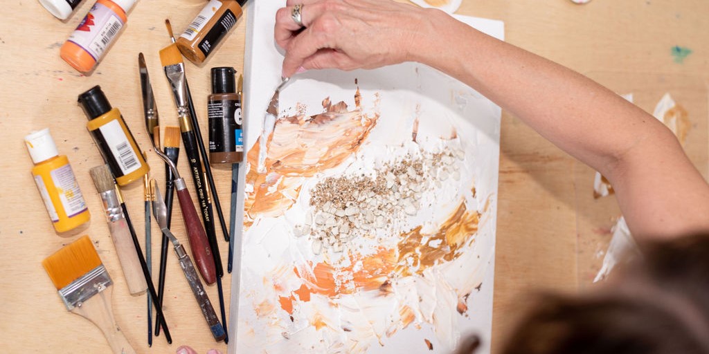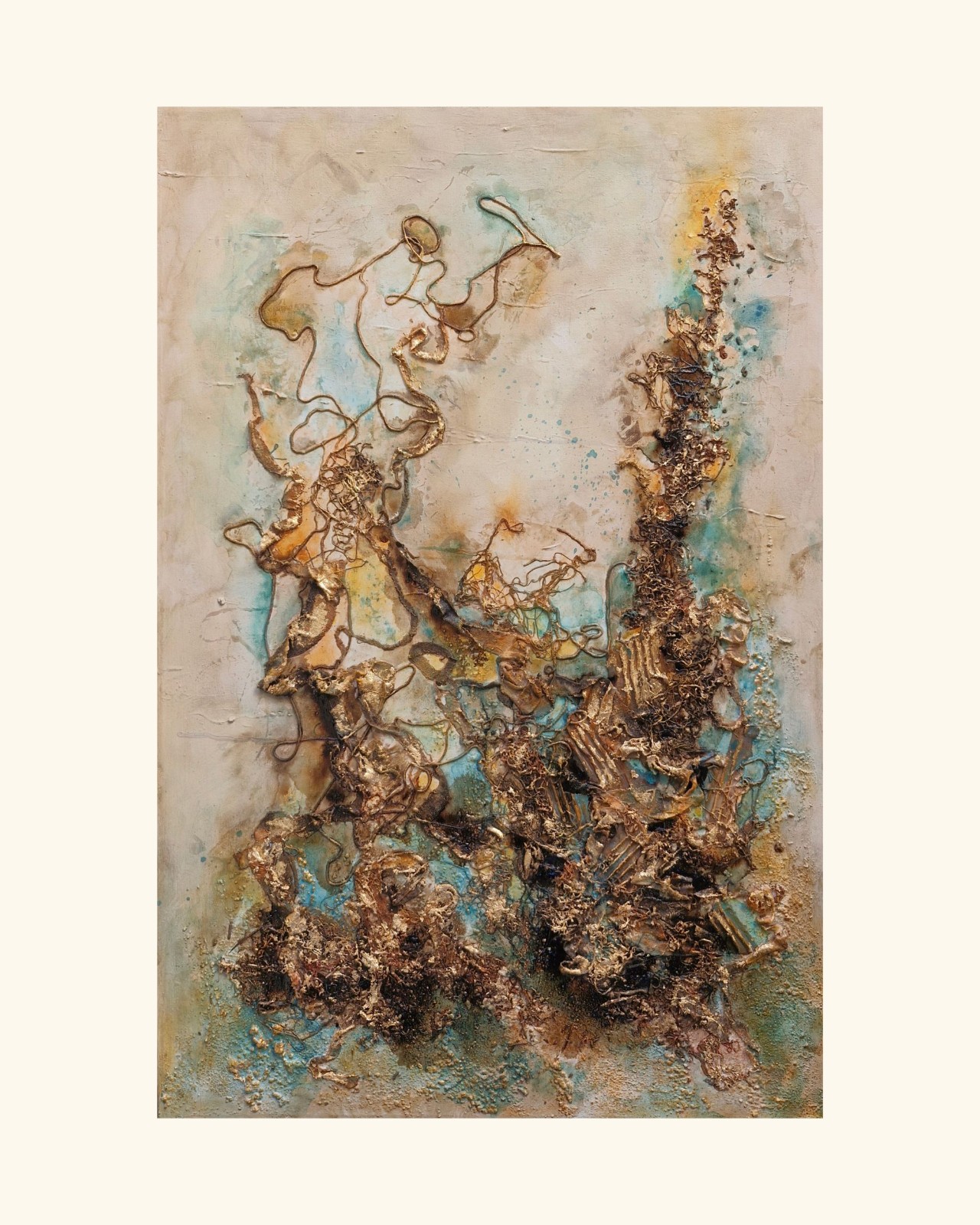 El uso de materiales diversos permite que la pintura evolucione de forma orgánica.