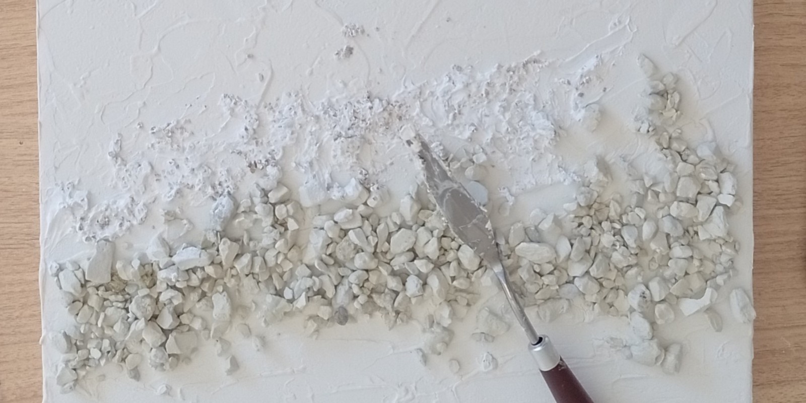 Trabajo combinando diferentes materiales y granulometrías que generan volumen, movimiento y profundidad. Muchas veces incorporo materiales de la construcción —pastas, arenas, ripios o pintura asfáltica— creando superficies ricas en textura y expresividad.